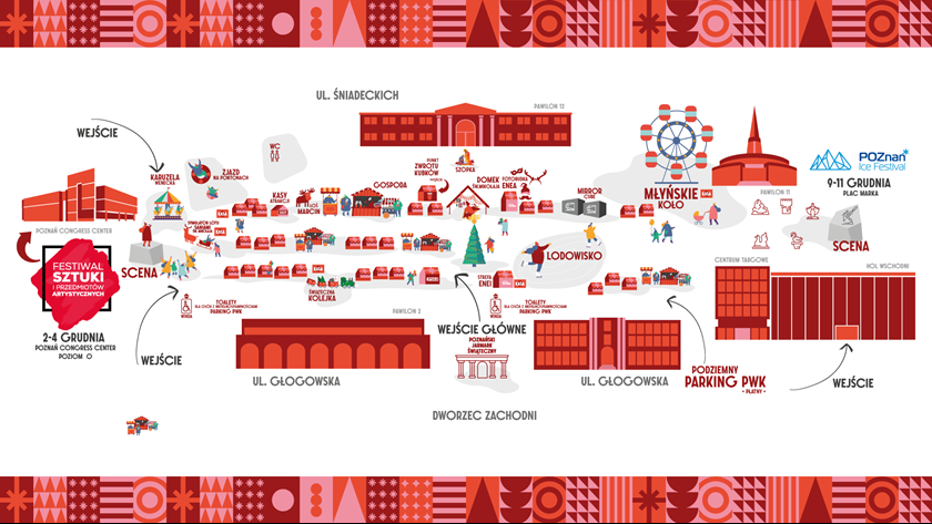 Poznański Jarmark Świąteczny odbywa się na nowo powstałym Placu Powszechnej Wystawy Krajowej (ul. Głogowska 12), na terenie Międzynarodowych Targów Poznańskich. Wejście główne na teren Jarmarku przez bramę 9 (od ul. Głogowskiej) na wprost Dworca Zachodniego.