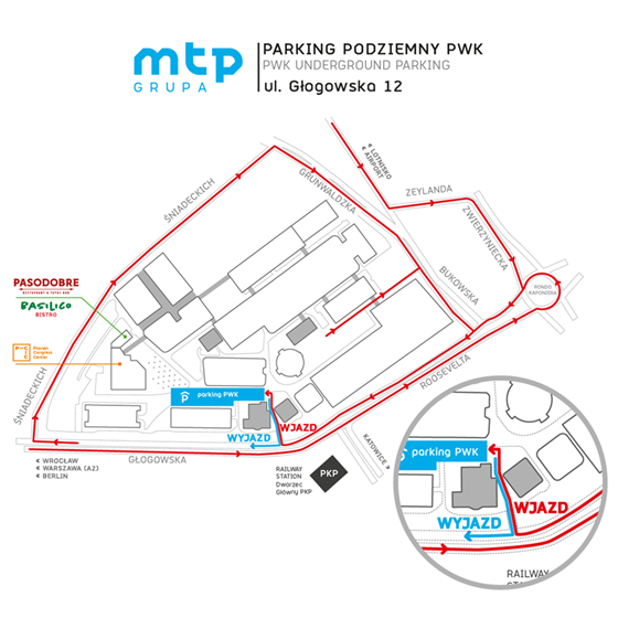 Zmotoryzowanych gości wydarzenia zachęcamy do skorzystania z Parkingu Podziemnego PWK, zlokalizowanego w centrum Poznania, przy ulicy Głogowskiej 12, na terenie Międzynarodowych Targów Poznańskich. Wjazd na parking znajduje się tuż za budynkiem Centrum Targowego, vis a vis dworca PKP.