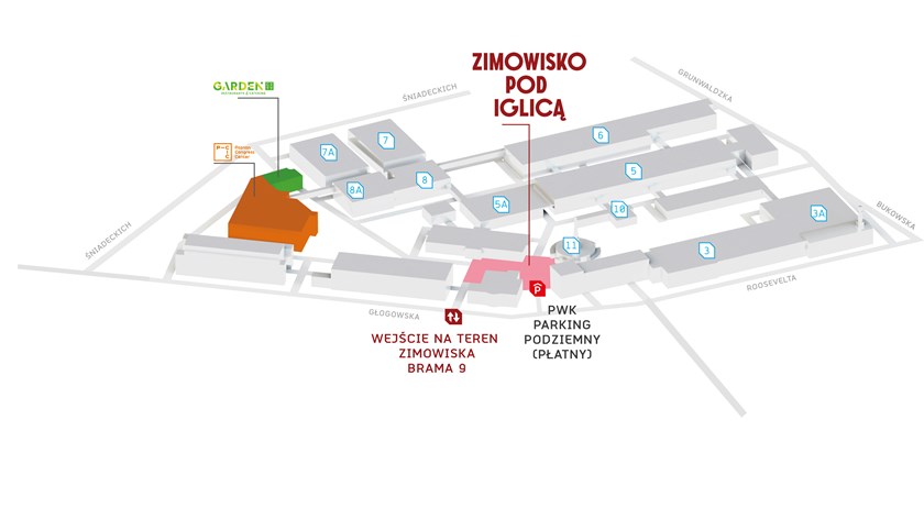 Nie można wjechać samochodem na teren Zimowiska. Zapraszamy na nowo otwarty wielopoziomowy Parking PWK, który znajduje się pod terenem Poznańskiego Jarmarku Świątecznego. Z parkingu na teren Jarmarku można się dostać wygodnymi windami, które wychodzą na Jarmark. Wjazd na parking znajduje się od ul. Głogowskiej. Cena parkingu: 7 zł/godzinę. Szczegóły na temat parkingu >> TUTAJ